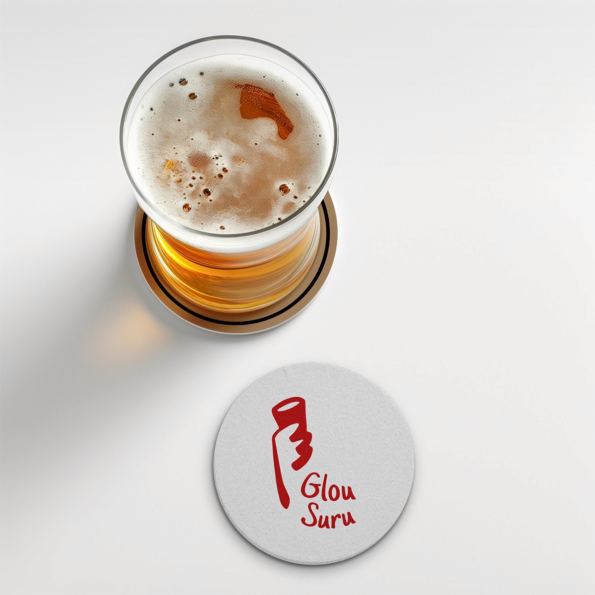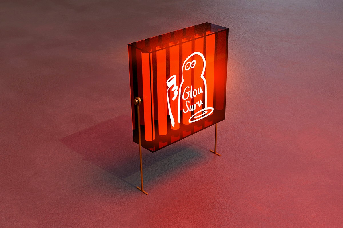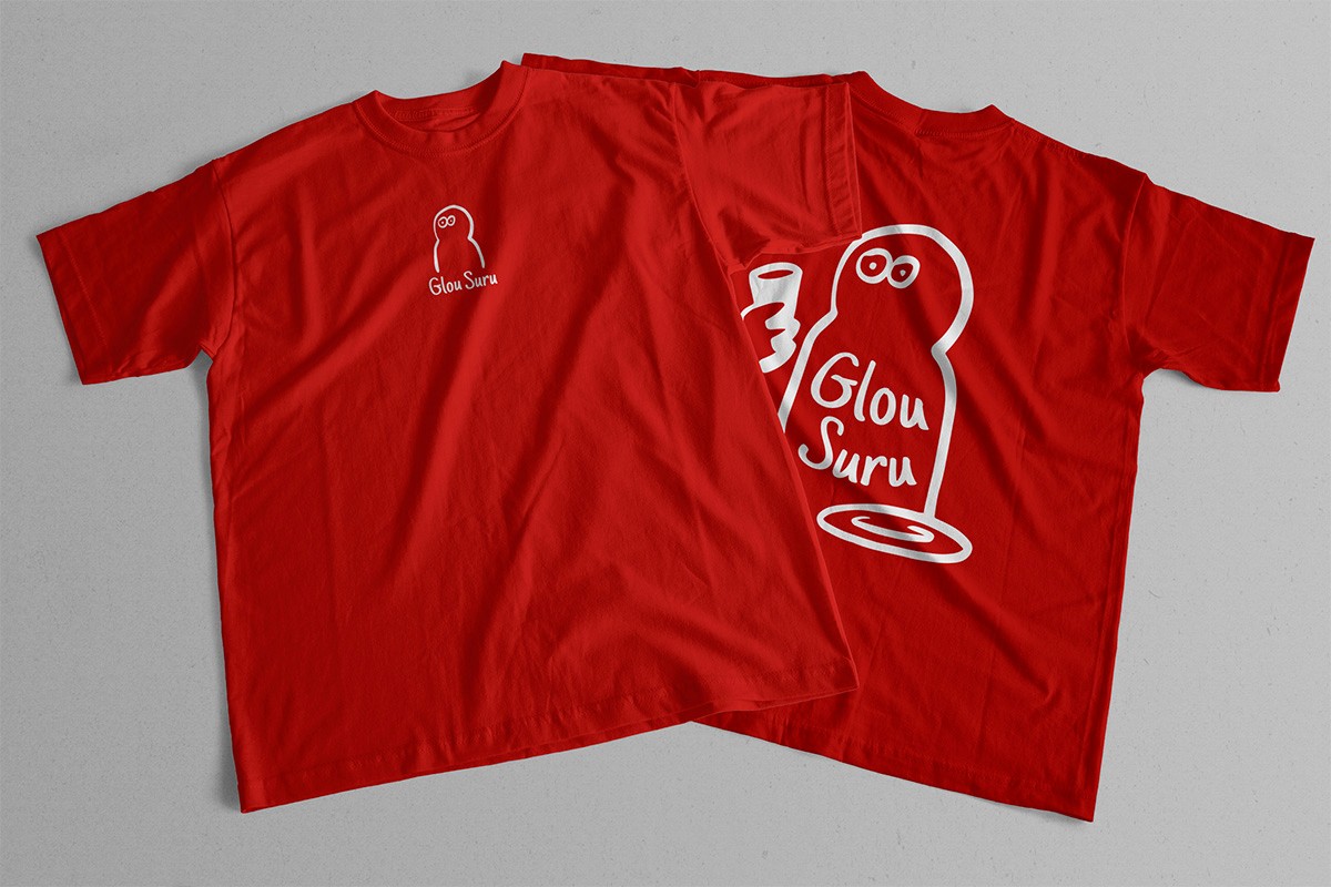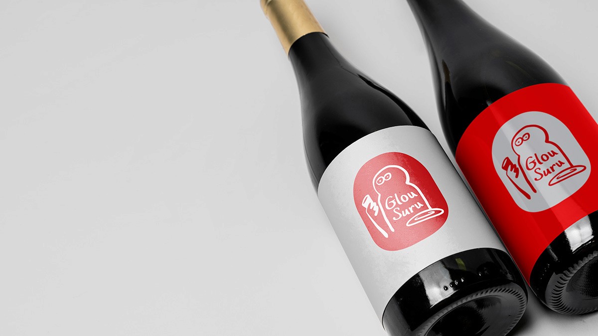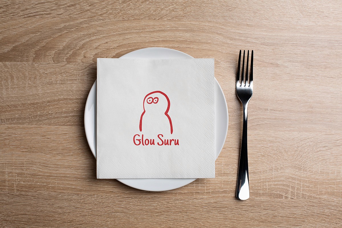 The name combines glou (the sound of drinking) and suru (the sound of slurping noodles) — a playful take on the sensory experience of food. This intuitive spirit carries through to the visual identity: a hand-drawn, asymmetrical logo character that feels spontaneous, expressive, and just a bit cheeky — like a sketch left on a napkin after a good meal.